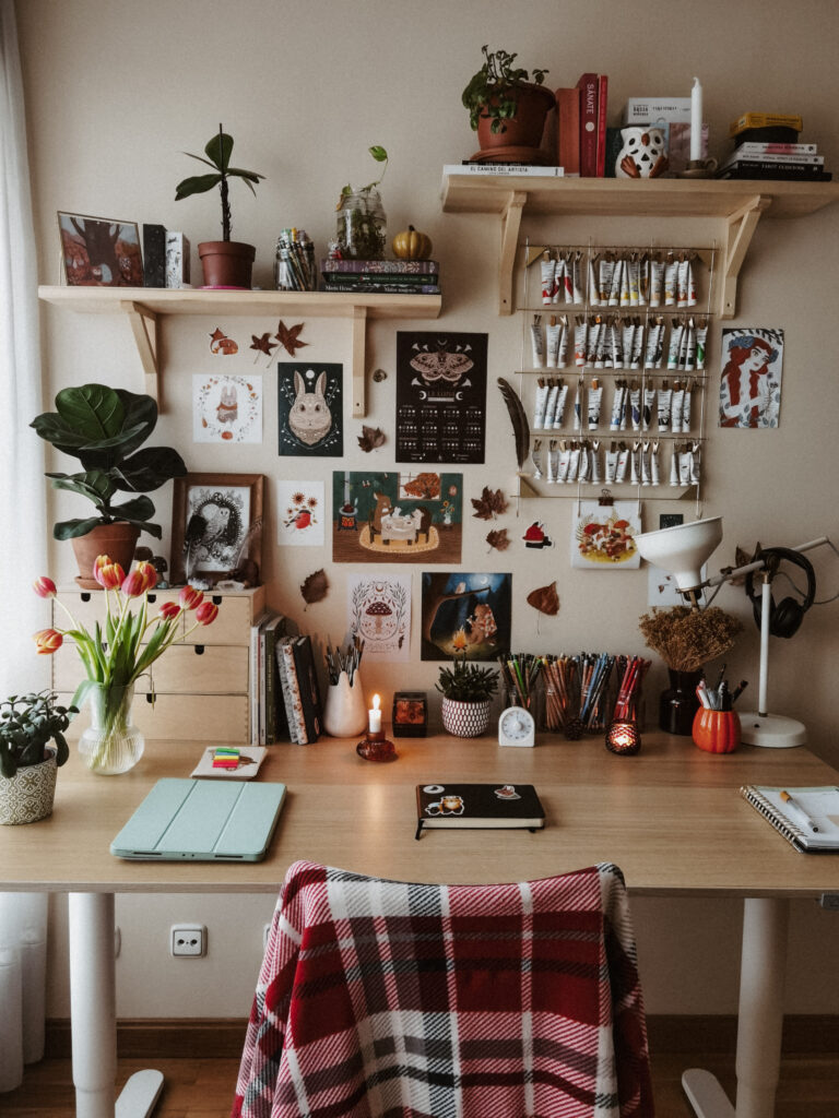 Trabajo desde casa, en un espacio que he llenado con cosas que me inspiran: plantas, luz natural y mucho café. Aquí es donde doy forma a las ideas para mi tienda online, preparo contenido para mi comunidad en Patreon y, en general, paso los días creando. Mis proyectos giran en torno a capturar la belleza del mundo natural y a crear piezas que conecten contigo, que te hagan sentir algo o que simplemente te alegren el día.