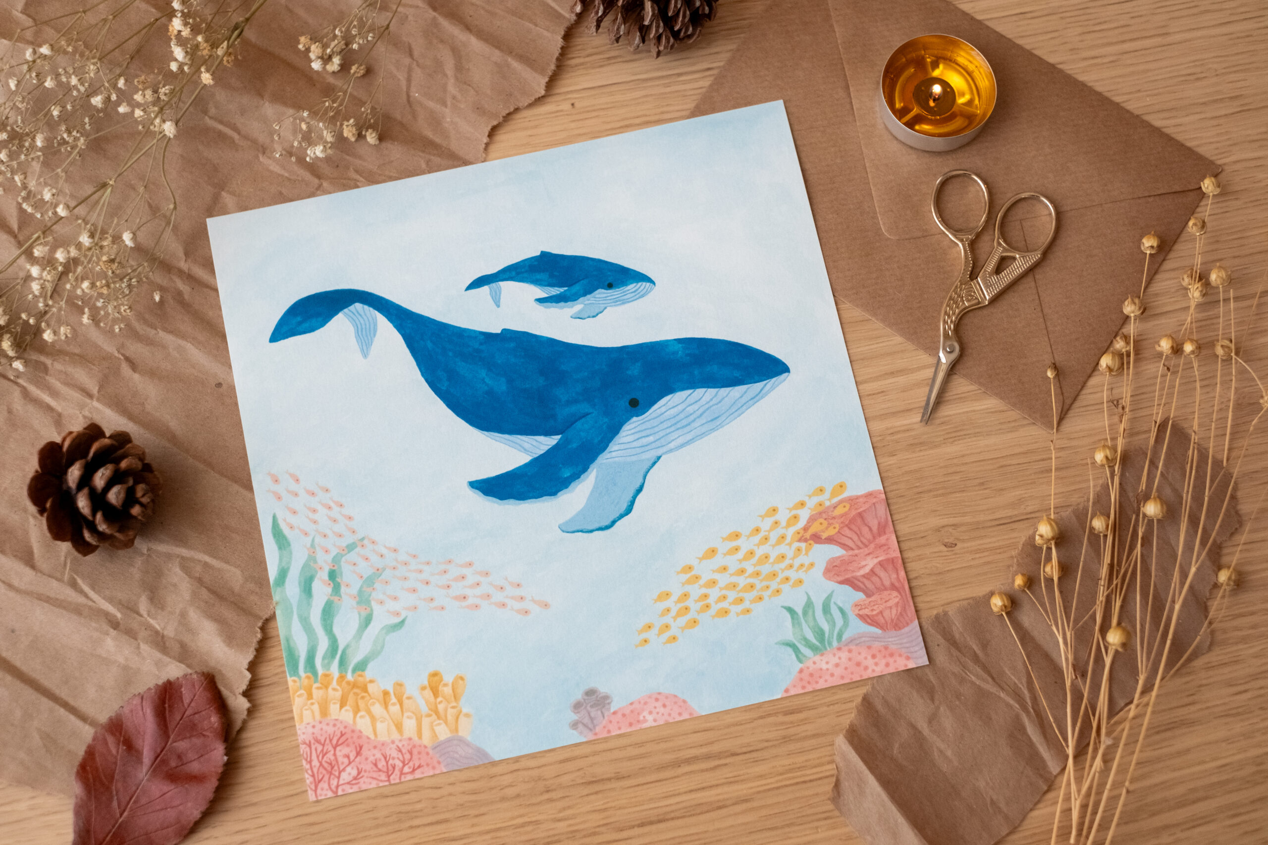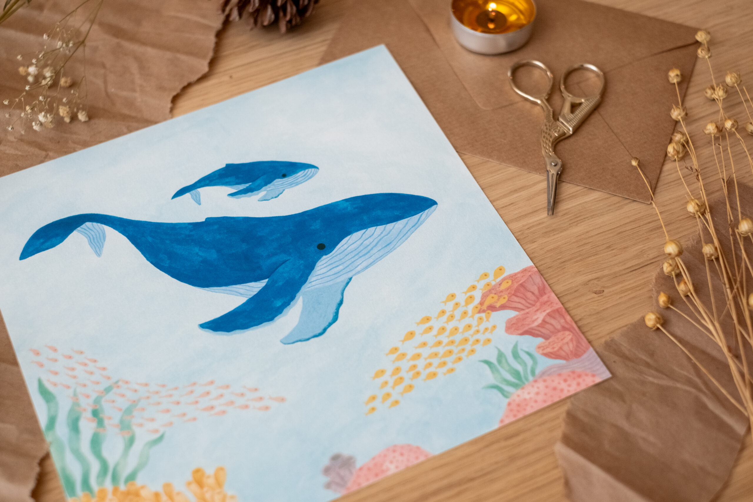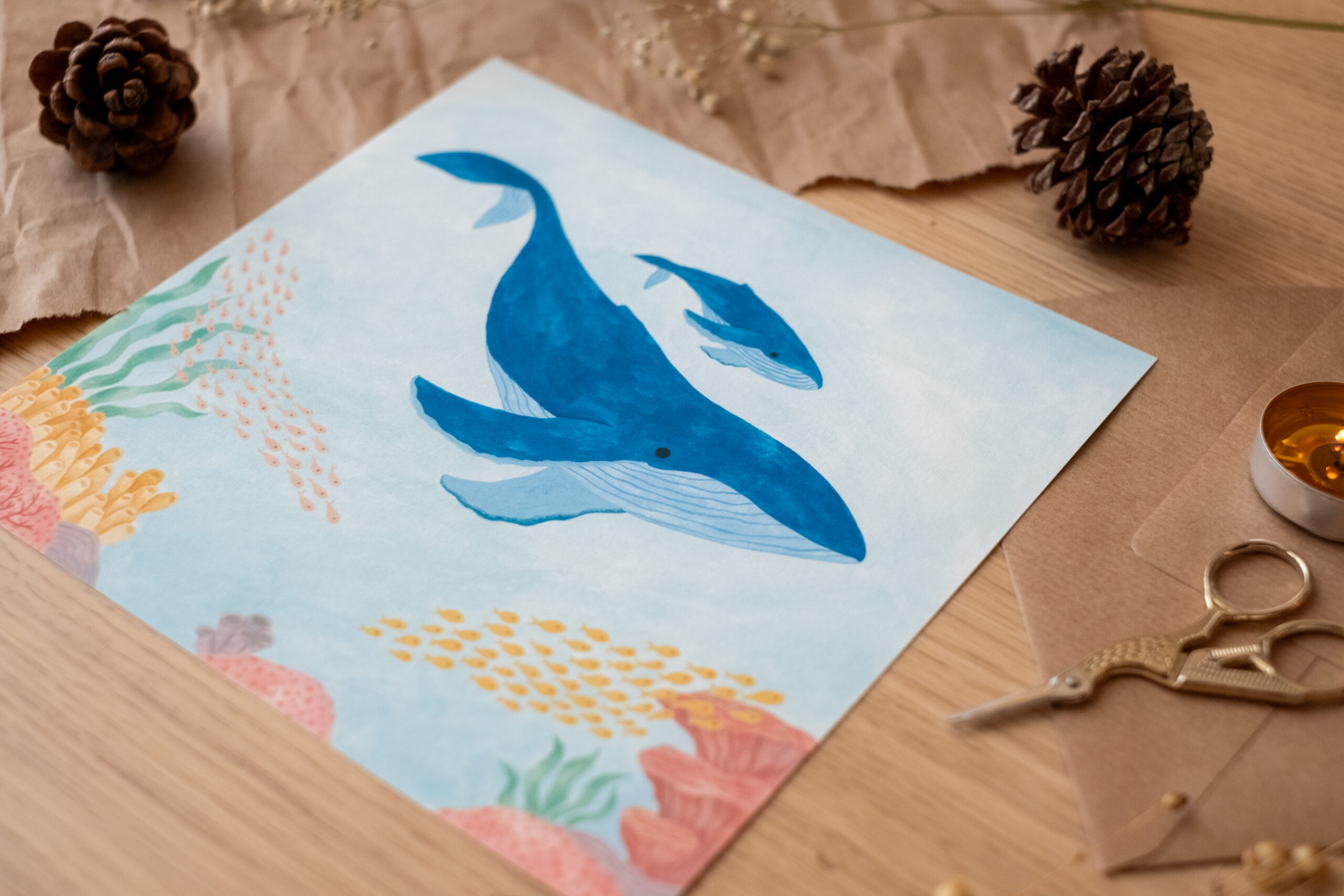 • Calidad de archivo: Impresa en papel premium de 300gr con acabado mate. Es un papel con cuerpo, que respeta la profundidad de los azules y la delicadeza de los corales.